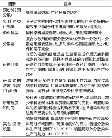 三、 分散染料超細(xì)化的影響因素