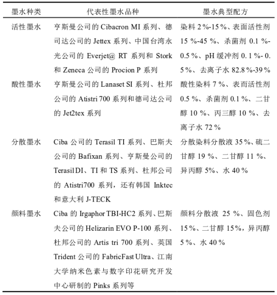 根據所用的著色劑,可分為染料墨水和顏料墨水兩大類。如酸性染料墨水、活性染料墨水、分散染料墨水等都屬于染料墨水。