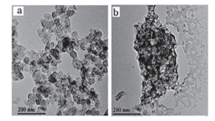 (a))苯乙烯-馬來酸酐共聚物部分酯化物(PESMA)包覆的納米自分散炭黑(b)未經處理的原始炭黑