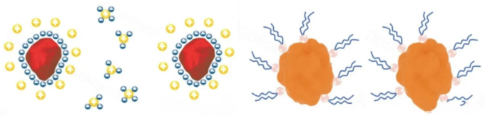該方法是提升傳統顏料分散體系穩定性的基礎工藝,主要是在鋯珠等研磨介質的高速剪切碰撞作用下,具有兩性基團的分散劑使其疏水基團錨定于顏料表面,而親水基團則在水相中溶劑化伸展,從而通過靜電斥力與空間位阻效應共同作用,形成具備一定分散穩定性的顏料色漿。