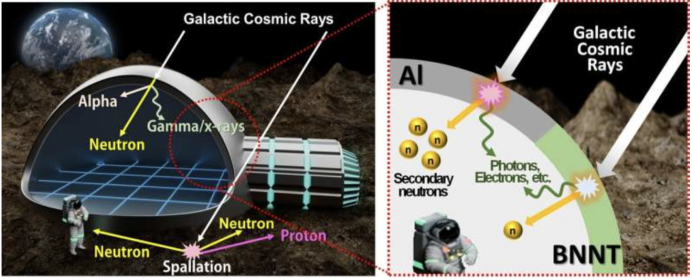 高能宇宙輻射對宇航員的細胞和DNA構成嚴重威脅,是導致癌癥的主要原因。尤其是在行星表面產生的次級中子,其危害性可高出其他輻射類型20倍。目前最常用的屏蔽材料鋁,在一定厚度以下會產生額外的次級中子,存在固有缺陷。BNNTs直徑極細,約為5nm,即人類頭發厚度的1/20000,使其非常輕巧,并具有優異的熱中子吸收能力,但其應用一直受限于工藝。