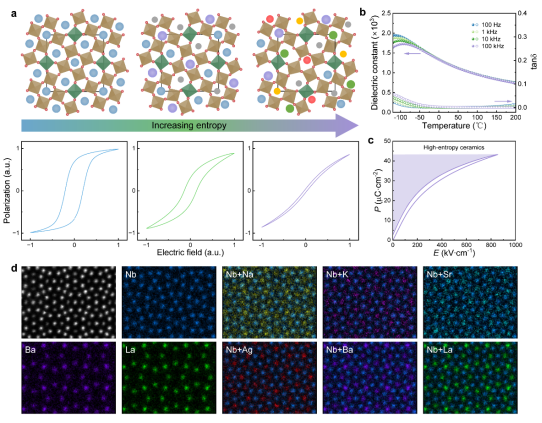 高性能介質電容器是現代脈沖功率器件(如激光器、新能源逆變器)的關鍵元件,用于快速存儲和釋放電能。為實現器件的小型化和集成化,電容器需要極高的能量存儲密度。但業界存在瓶頸,即現有基于鈣鈦礦結構材料(如Ba...